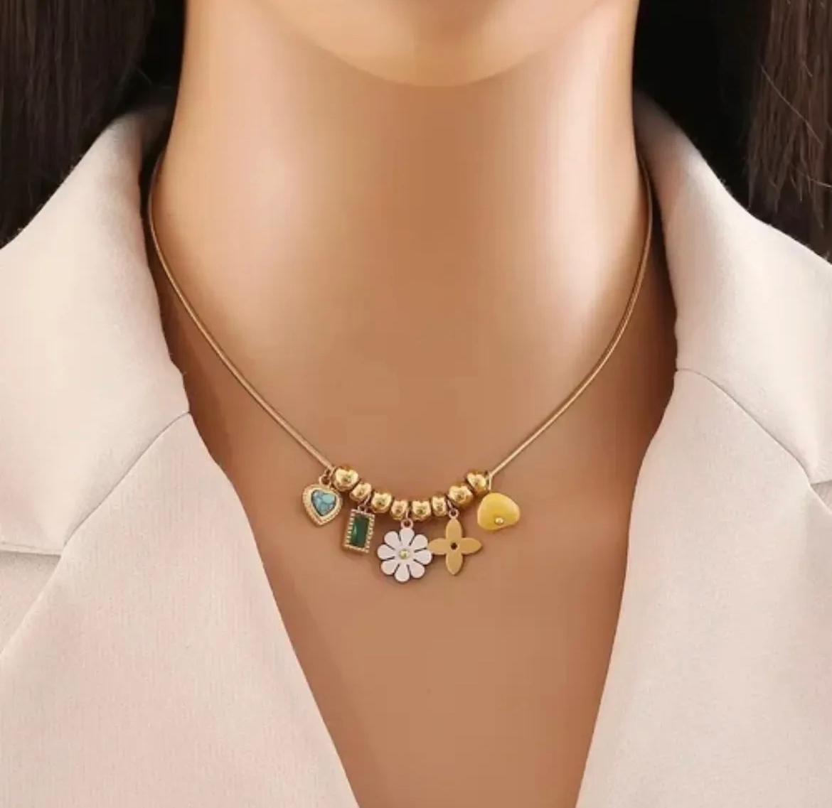 A collection of delicate charms brings personality and sparkle to this versatile necklace. Lightweight and thoughtfully crafted, it’s perfect for layering or wearing solo to elevate any outfit with effortless style.